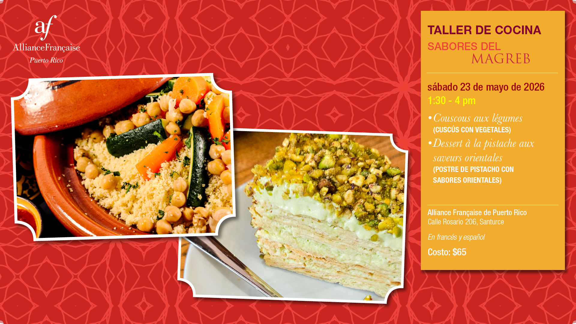 Las facilidades de la Alliance Française de Puerto Rico permanecerán cerradas del 29 de marzo al 5 de abril de 2026 por motivos del Receso de Semana. Regresaremos a nuestros horarios regulares el lunes, 6 de abril.