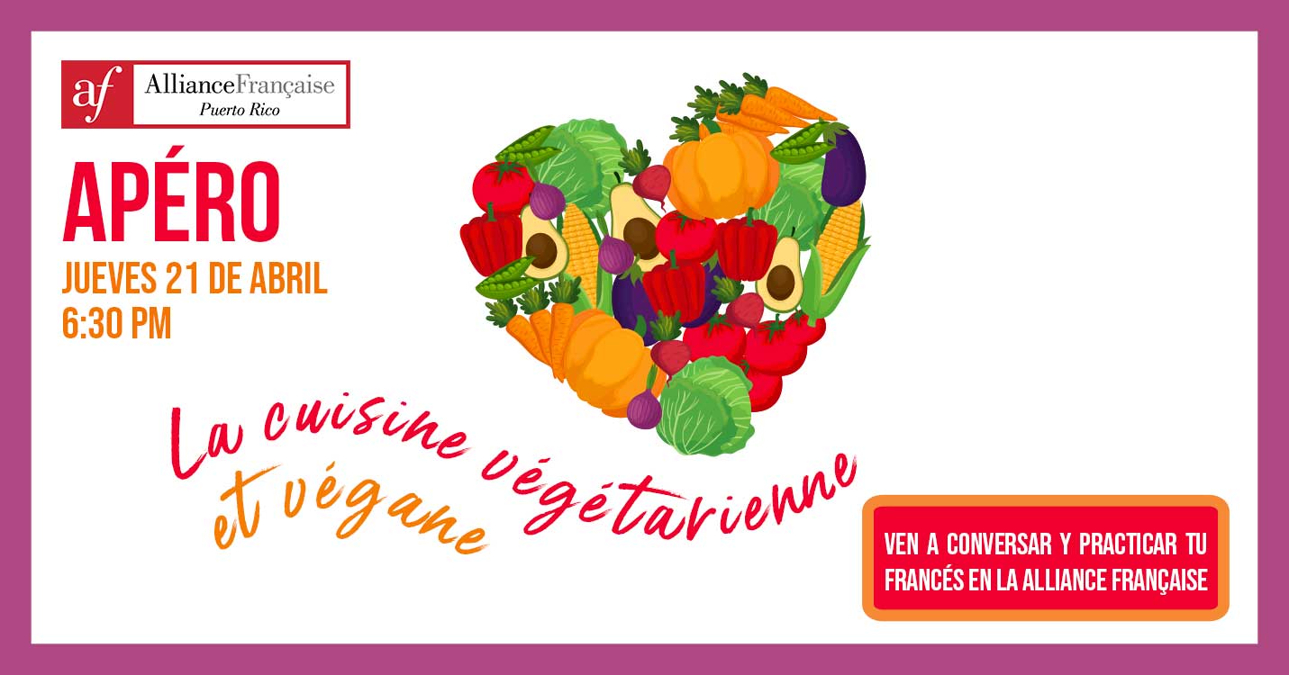 El jueves, 21 de abril, a las 6:30 pm, hablaremos de la cocina vegetariana y vegana.