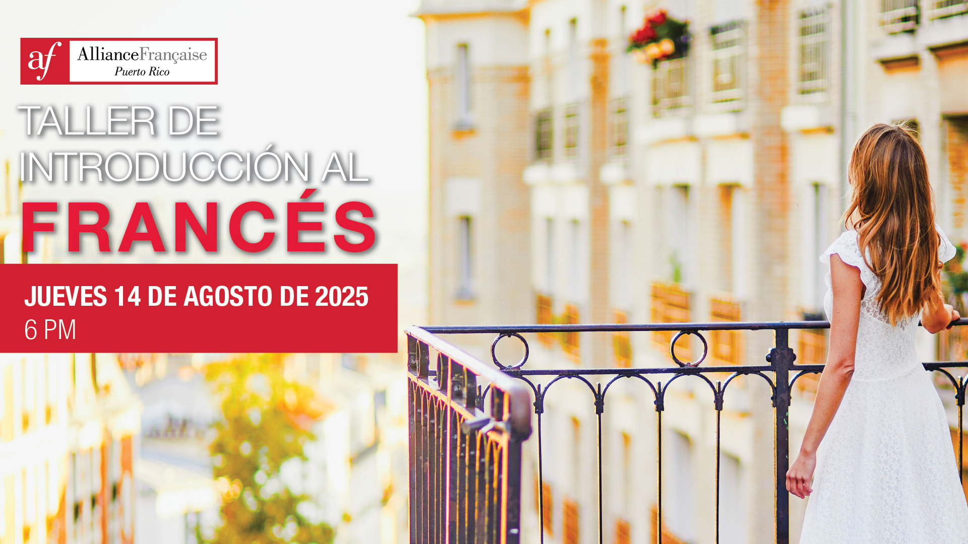 Únete a nuestro Taller de Introducción al Francés el jueves 14 de agosto de 2025 a las 6 PM en la sede de la Alliance Française de Puerto Rico en Santurce. Durante 90 minutos y por solo $10, aprenderás expresiones básicas y tendrás la oportunidad de hacer preguntas, todo bajo la guía de uno de nuestros distinguidos profesores.