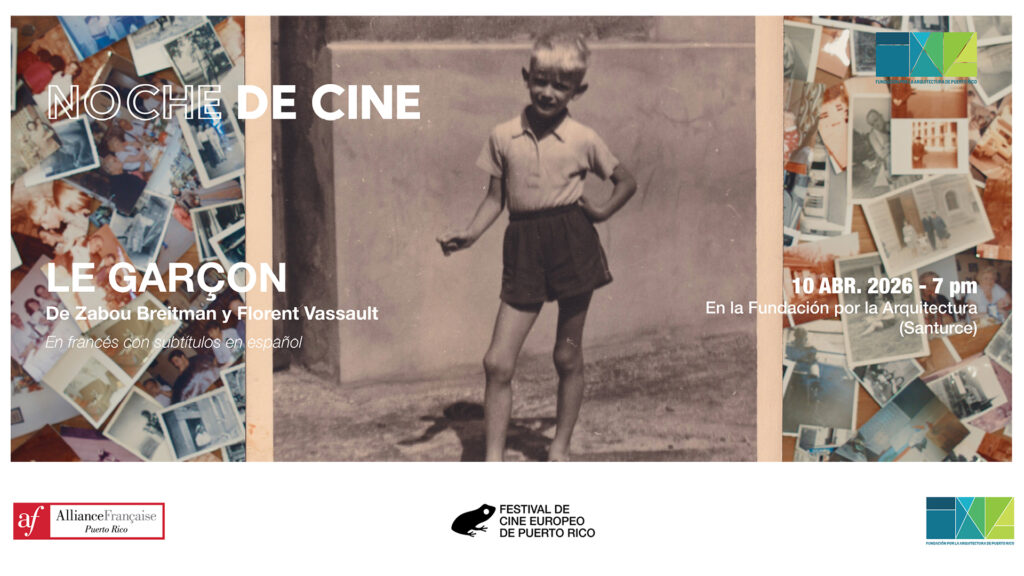 El viernes, 10 de abril de 2026 a las 7 PM presentaremos la docuficción Le Garçon de Zabou Breitman y Florent Vassault en un espacio especial cerca de la Alliance Française. Nos reuniremos en casa de nuestros vecinos Fundación por la Arquitectura y Colegio de Arquitectos (225 Calle del Parque, Santurce). Nos complace celebrar, en esta Noche de cine colaborativa de abril, el mes del paisaje y de la arquitectura paisajista con una película que celebra el arte de la…